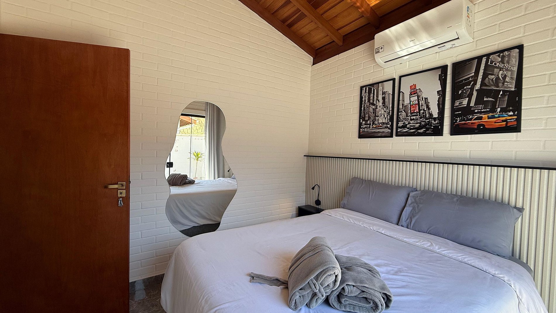 Nossos Chalés foram construídos cuidadosamente para que você possa desfrutar do sossego da natureza sem deixar o conforto de lado. Os quartos possuem ar-condicionado, Smart TV com canais de streaming, roupas de cama e banho perfeitamente limpas e confortáveis. Na cozinha você terá todos os eletrodomésticos e utensílios necessários para preparar suas refeições confortavelmente: fogão, forno elétrico e microondas, geladeira duplex, liquidificador, cafeteira elétrica, sanduicheira, air fryer, pratos, talheres e taças, além disso, na varanda, você poderá preparar o seu churrasco, fazer um lanche na chapa ou simplesmente curtir o calor do fogo nas noites frias. Toda nossa propriedade tem internet wi-fi, garantido a sua conexão com o mundo exterior.
