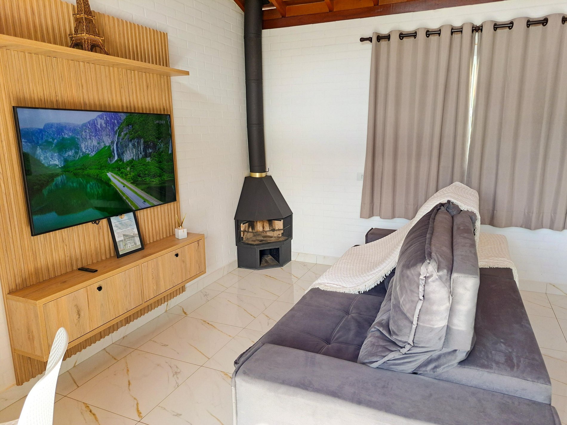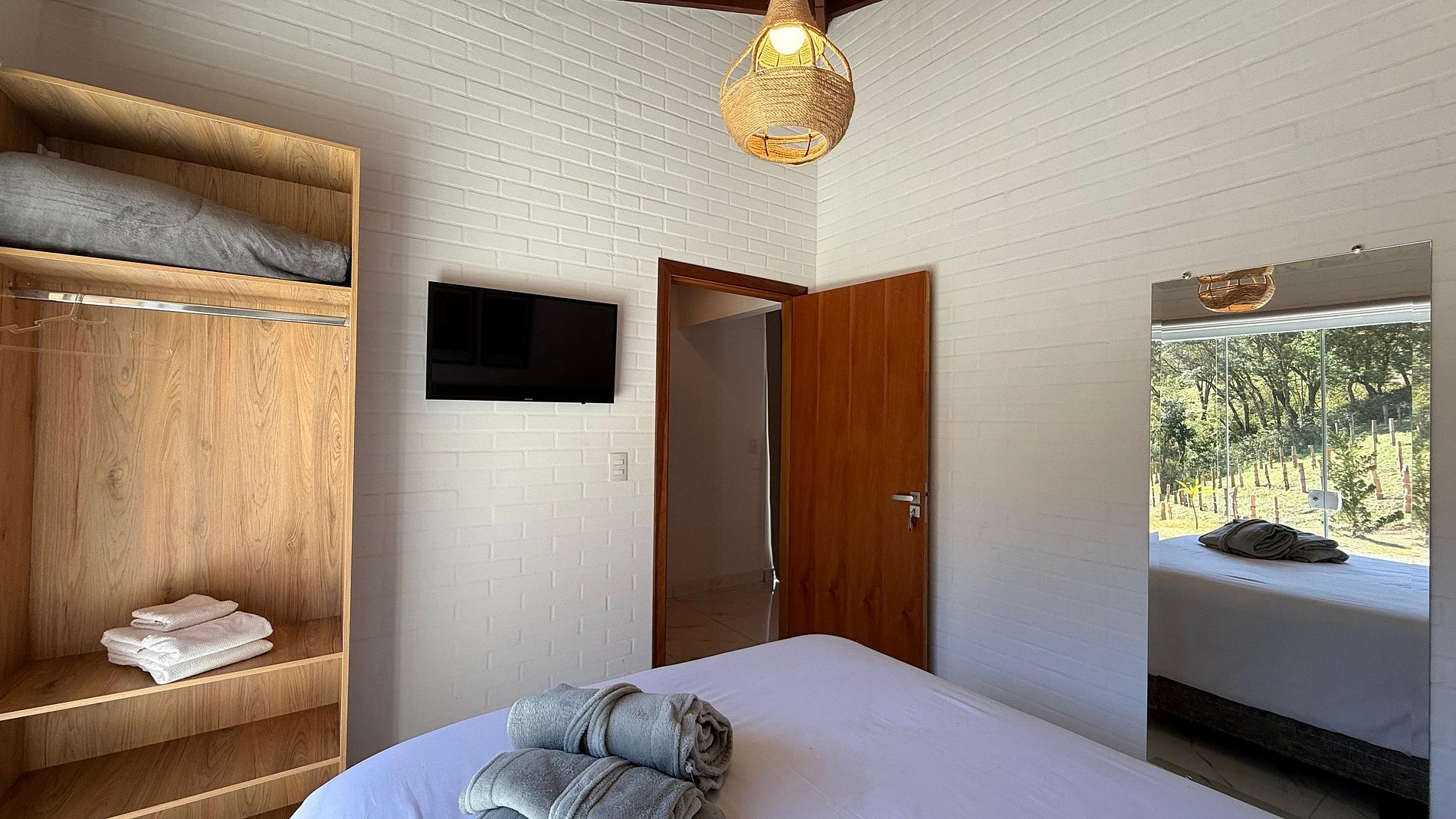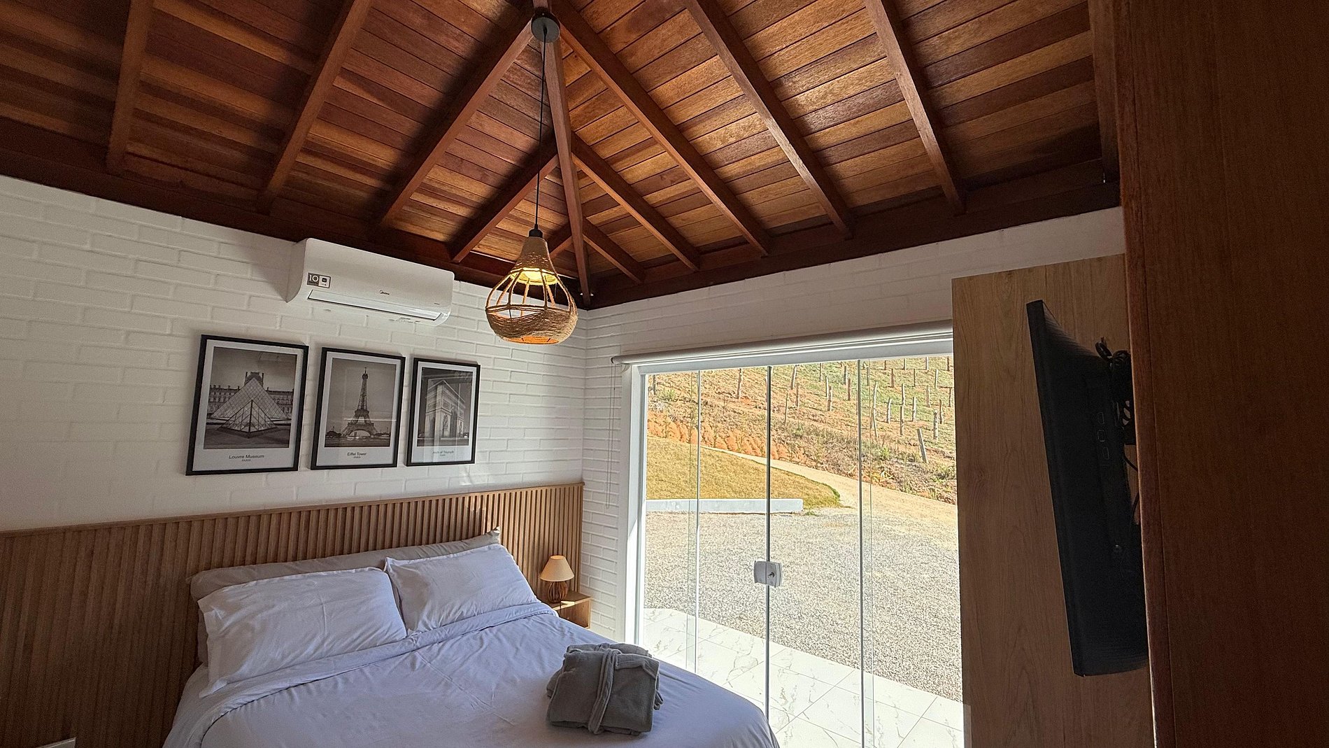Nossos Chalés foram construídos cuidadosamente para que você possa desfrutar do sossego da natureza sem deixar o conforto de lado. Os quartos possuem ar-condicionado, Smart TV com canais de streaming, roupas de cama e banho perfeitamente limpas e confortáveis. Na cozinha você terá todos os eletrodomésticos e utensílios necessários para preparar suas refeições confortavelmente: fogão, forno elétrico e microondas, geladeira duplex, liquidificador, cafeteira elétrica, sanduicheira, air fryer, pratos, talheres e taças, além disso, na varanda, você poderá preparar o seu churrasco, fazer um lanche na chapa ou simplesmente curtir o calor do fogo nas noites frias. Toda nossa propriedade tem internet wi-fi, garantido a sua conexão com o mundo exterior.