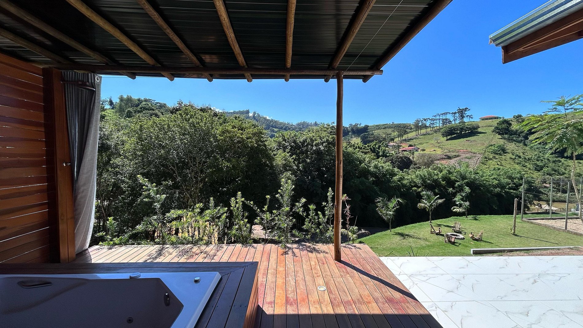 Imagine acordar com o canto dos pássaros, respirar o ar puro da natureza e desfrutar de uma vista deslumbrante de lagos e ipês floridos. O rancho foi cuidadosamente planejado para proporcionar o máximo de conforto e conexão com o ambiente, sem abrir mão dos detalhes que fazem toda a diferença.